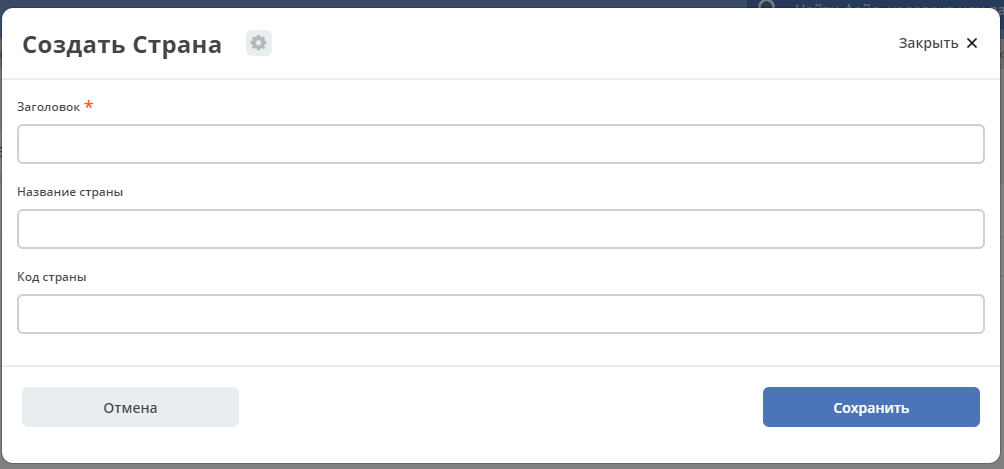 Общие справочники. Страны. Технические названия поле в форме создания / редактирования.