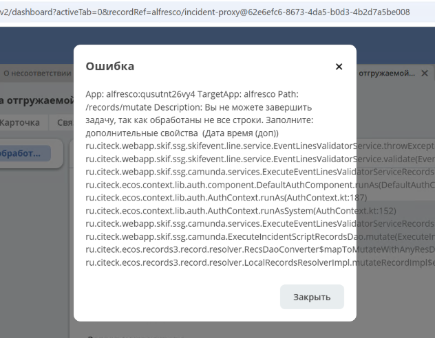ФР: В окне ошибки отображается сообщение ошибки IllegalStateException со стеком