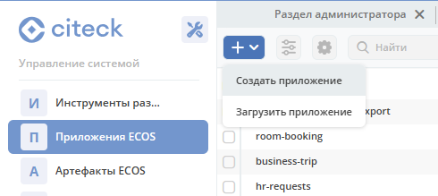 1. Перейти в "Раздел администратора - Управление системой - Приложения ECOS"