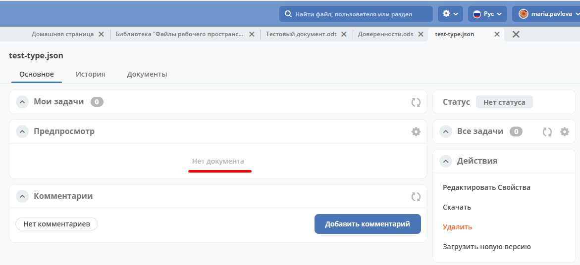 Не работает предпросмотр документа для файлов с расширениями: json, odt, ods.